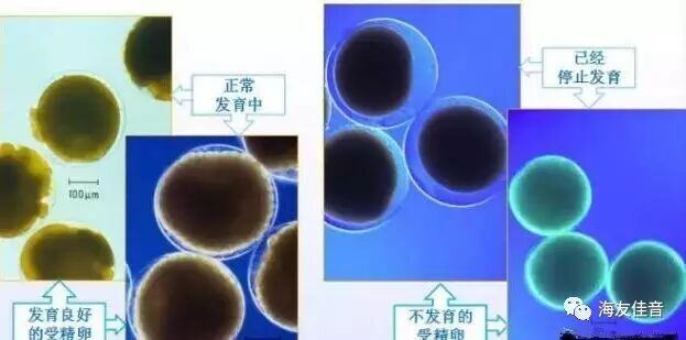 1.3、在显微镜下查看受精卵在孵化过程中,发育良好受精卵与发育受损或停止发育受精卵的区分。